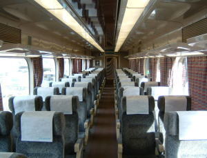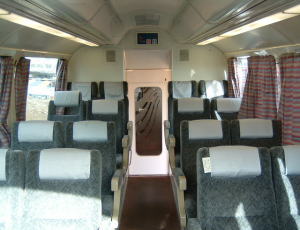 これが車内です。 こちらは、1両目の後ろ半分と2両目がこのようなタイプになっております。 |