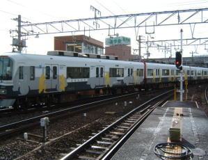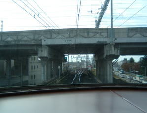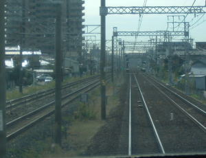 9時24分、定刻どおり発車しました。 名古屋本線は、複線なのですが、岐阜駅を出てすぐは、一瞬だけ単線になります。 この単線のおかげで、反対列車は手前で停車して、待たなければなりません。 |