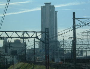 特急は、まもなく新名古屋駅に着こうとするところです。 その手前に、この大きなビルは、名古屋駅にある、セントラルタワーズというツインビルです。 最上階には、700円くらいお金が取られますが、景色は最高です。 天気のいい日や夜景は綺麗に見えると思います。 |