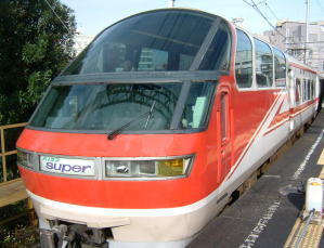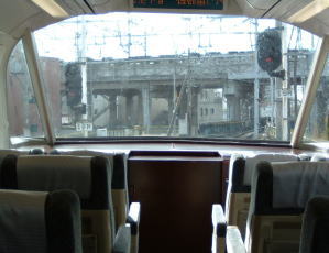 そして、後ろ側はごらんのような車両です。 6両編成の一番後ろの車両です。こんな形となっております。後ろの4両は自由席です。車内は、後ほどご案内いたしましょう。 |