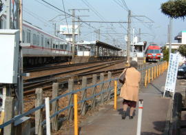 今回のスタートは、名鉄の新清洲駅です。 発車時間まで時間がありましたので、軽〜く駅撮りをしました。右手にパノラマカーの普通と、左手にパノラマスーパーの回送列車が見えます。 9時50分発の急行列車で名古屋へ向かいました。 |