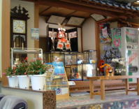 ちょうど、チェックインの時間となりましたので、ホテルへ行くことにしました。 ホテルというよりは、民宿といった感じです。 入り口ロビーには、人形が飾ってありました。 |