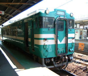 明石焼き賞味の後は、また鉄道の旅です。 次は、姫新(きしん)線に乗ります。姫新線は、姫路から岡山県の新見(にいみ)へ行く路線です。 乗ったのは、キハ40系の12時05分発の佐用(さよ)行きです。しかも1両編成でした。それも大混雑をしておりました。 |