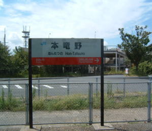 気動車に乗ると、ローカルムードが一気に増します。 12時30分、本竜野(ほんたつの)駅に着きました。ここまでは、30分に1本の割合で本数がありますが、ここからは、1時間に1本となります。 |
