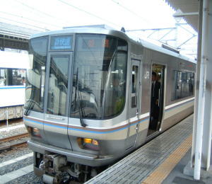 これらの試験列車を元に、500系や700系の新幹線が出来たのですね。 223系は、いつ乗っても、速いです。 223系独自の警笛(ミュージックホーン?)を鳴らしながら、次々と通過していきます。 この警笛音、初めて聞く方は、きっと「なんだ?この音は?」と思うはずです。 新快速は、人気が高く、あっという間に超満員となりました。 |