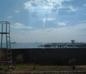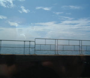 この海が見えるところも数分くらいしか通過しませんが、天気がよく波が穏やかなら、結構良い景色だと思います。 時速130kmを出すので、やはり、あっという間に海は見えなくなってしまいます。 |