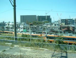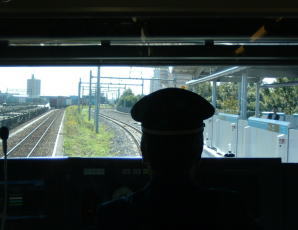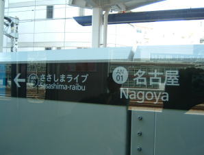 最初の停車駅、ささしまライブ駅に到着です。 このあたりは、JRや近鉄の車両基地があるので、眺めているには、退屈しない場所です。 |