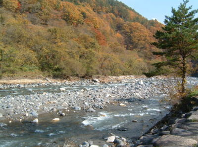川もこのように近くに流れております。 これは、木曽川の支流です。とても綺麗な水でした。 |