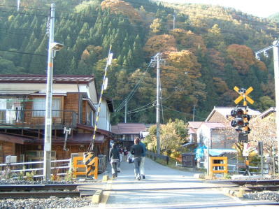 奈良井宿へは、こちらのJR中央線の踏切を渡ります。