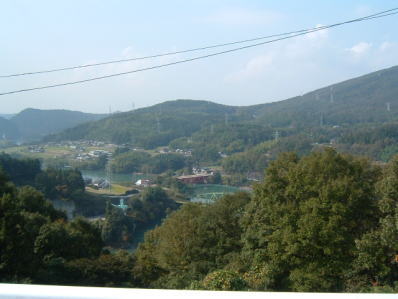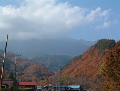 大きな山が見えますが、これは、鳥居(とりい)峠です。 この峠が、日本海と太平洋を分ける分水界となっております。 |