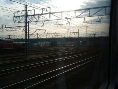 東海道本線を時速120kmで飛ばしていきます。 こちらは、稲沢(いなざわ)の貨物駅です。 |