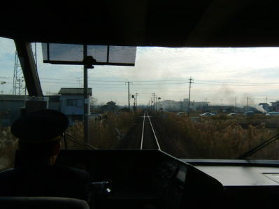 岐阜(ぎふ)駅を過ぎると、高山本線に入ります。 我々の乗っているグリーン車が先頭車となりました。早速、前面展望を楽しむことに・・・ |