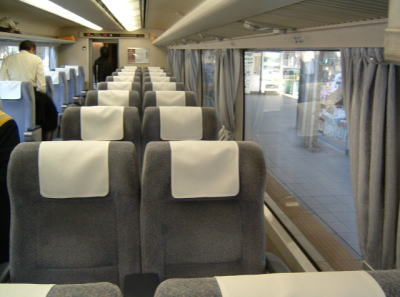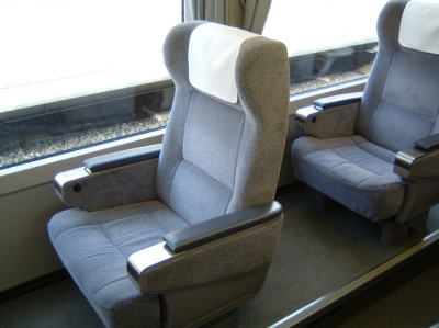 こちらがグリーン車の車内です。 1−2列の3列シートの車両でした。 |