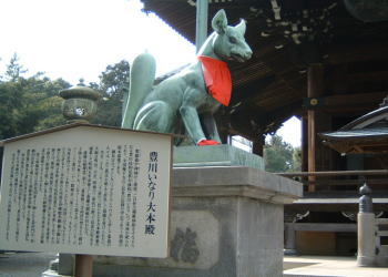 「いなり」ということで、このように、狐(きつね)の像がありました。 また、いなり寿司も、豊川では有名ですね。 |