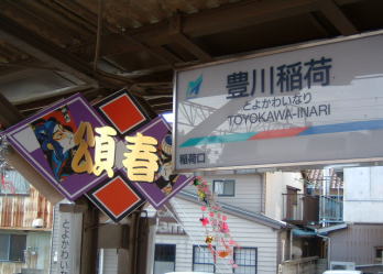 その隣には、名鉄の豊川稲荷駅があります。 こちらは、昔からの感じの駅舎でした。 |