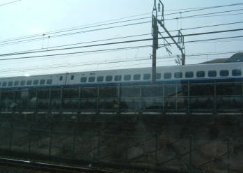 列車は、快適に進みました。しかし、豊橋駅に近づくと、少し遅れが生じてきました。 豊橋駅手前では、JR飯田線と共用区間ですので、ダイヤ合わせも大変かもしれないですね。 横を新幹線があっという間に走り去っていきました。 |