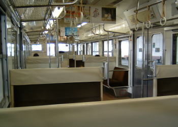 車内は、こんな感じです。 ボックスシートが並んでおり、扉部分だけは、ロングシートとなっておりました。 自称、セミクロスシートですね。 |