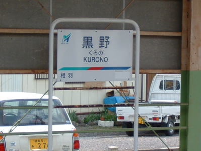 駅名版を見ると、反対側にテープらしきものが…。 そう、ちょっと前までは、ここ黒野から先にも路線が2つあったんですね。 |