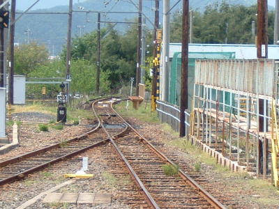 そして、こちらの車止めは、揖斐(いび)線跡です。 廃線跡を見ると、やはり心が痛みますね。 |