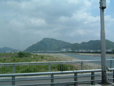 これは、長良川です。 正面にある山が岐阜城がある、金華山(きんかざん)です。 |