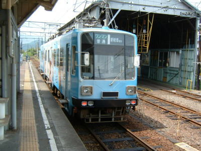 すぐに、急行黒野行きが到着しました。 これがその車両です。 路面電車ですね。 |