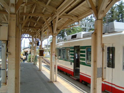 長良川を渡って、すぐに忠節(ちゅうせつ)駅に到着しました。 ここから、路面区間を離れ、普通の線路区間となります。 |