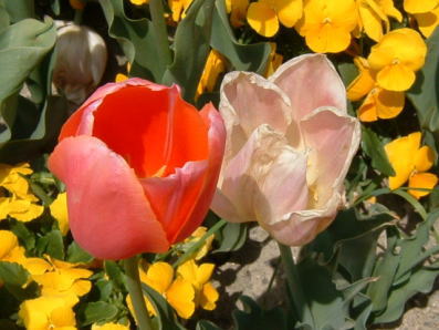 右側のチューリップ、ちょっと枯れ目ですが、ピンク色です。