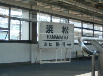 浜松(はままつ)駅に到着しました。 ここで、かなりまとまった乗車客がありました。 あと一駅です。 |
