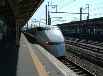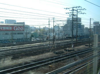 この新幹線、JR西日本所有のものでした。 なので、車内メロディーも「いい日旅立ち」のメロディーが流れておりました。 2本の新幹線に抜かれ、やっと豊橋駅を離れました。 |