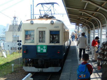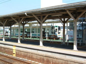 改札は混雑していたので、すぐにホームへ行くことにしました。 まだ、SLは無く、普通列車の千頭行きが停まっていました。 元近鉄420系でした。 |