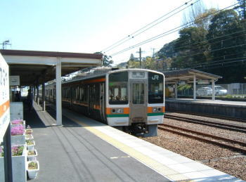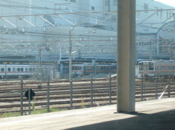 …ということで、ホームに出て、在来線側のホームに電車がたくさん停まっていたので、撮影をしました。 左から、名鉄の特急、JRの313系、そして、JRの211系です。 |