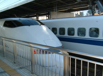 名古屋駅新幹線ホームに、7時半過ぎに着きました。 東京方面行きのホームで乗る列車を待っていると、大阪方面行きのホームには、「のぞみ1号」博多行きの500系新幹線が停まっていました。 そういえば、500系は、いつ乗ったっけ?と思いながら、カメラに撮りました。 |