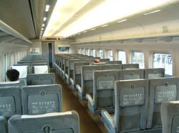 この新幹線、名古屋が始発ですので、ご覧のとおりガラガラ。 しかも、一番後ろの自由席車に座ったので、乗客はたったの3人しかいませんでした。 |