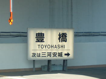 豊橋(とよはし)駅に到着しました。 ここでは、通過列車待ち合わせのため、6分間停車となりました。 ホント、新幹線版鈍行列車ですね。 |