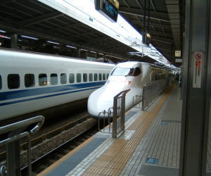 JR名古屋駅で仲間と会って、すぐに新幹線ホームへやってきました。 車椅子の人と一緒なので、別の道からホームへきたのです。 しばらくすると、名古屋始発の6時40分発東京行き「ひかり」がやってきました。 車両は、700系です。 |