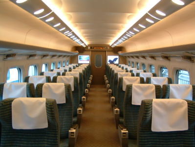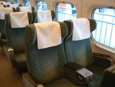 わたくしたちは、自由席だったので、すぐに席を確保するために、自由席車両へ移動することにします。 わたくしは介助者なのですが、やはり、席に座りたいので… ちなみに、この画像は、グリーン車です。 |