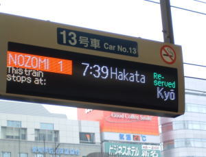 9月17日(1日目)の朝です。 まずは、名古屋駅から、新幹線で九州入りをします。 乗る列車は、7時39分発の「のぞみ1号」です。 |