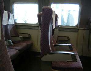 早速、1号車から乗車します。 分かる方なら、わたくしが、どこへ座るか大体想像がつくと思いますが… |