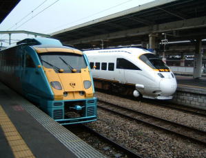 わたくしが、まず初めに乗るのは、画像の左側にある車両です。 13時04分発、大分行きの「ソニック25号」です。883系です。 隣の右側にあるのは、885系の「かもめ」号です。 実を言うと、当初の予定では、885系の「かもめ」で長崎へ行くはずだったのですが… |