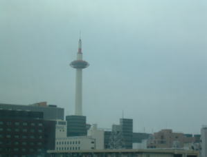 8時15分、最初の停車駅、京都駅に着きました。 京都タワーが見えました。 |