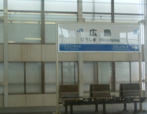 新神戸を出ると、時速300km運転が始まりました。 300kmになると、やはり、速さを感じます。 そして、岡山を過ぎ、9時51分、広島駅に着きました。 |