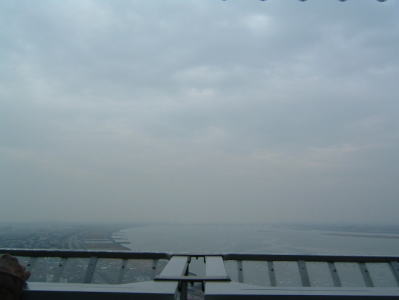 しかし、なんとか頑張り、こちらの長良川の河口の方を撮りました。 ご覧のように、曇り空で、遠くがぼやけて見えました。 やはり、天気が良い時でないと、見晴らしは良くないですよね。 |