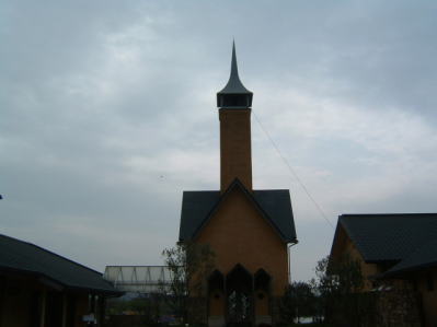 なばなの里の自称シンボルである、教会の前に来ました。 曇り空のせいか、画像が暗くなってしまいました・・・ |