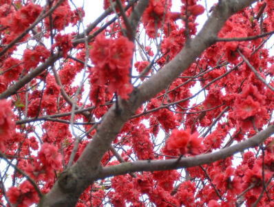 沿道には、綺麗な赤色の花を咲かせた木がありました。