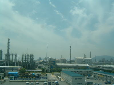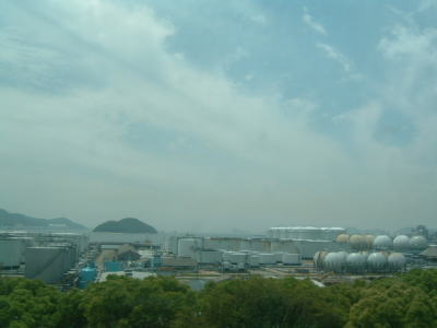徳山駅と言えば、やはり、この工場群が特徴です。 このあたりに来ると、車椅子のM.S君は、居眠りをしており、わたくしは何度も突っ込んで起していました。 |