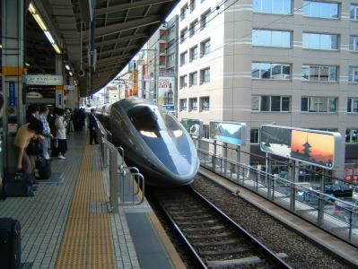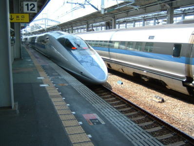 12時39分、無事に小倉(こくら)駅に到着しました。 上り線にも500系が・・・ この500系の上下線並びで見たのは、はじめてです。 |