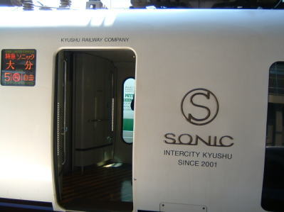 そして、在来線のホームへ降りると・・・。 白いソニックこと、885系が停車しておりました。 この車両を見た車椅子のM.S君、驚きを隠せず大声で叫んでいました。 |