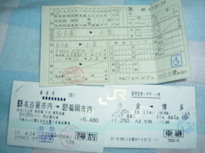 1日目(5月20日)の切符です。 1日目は、このような切符を使っての旅となりました。 |