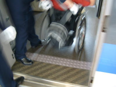 早速、車内へと入っていきます。 このように、駅員にやってもらうと、わたくしも楽です。 |
