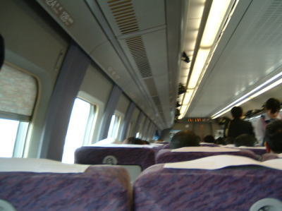500系の客室へ入ってきました。 ここでも、車椅子のM.S君は、驚いていました。 |